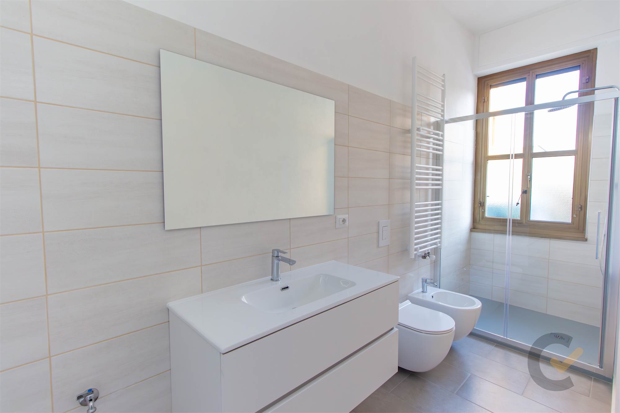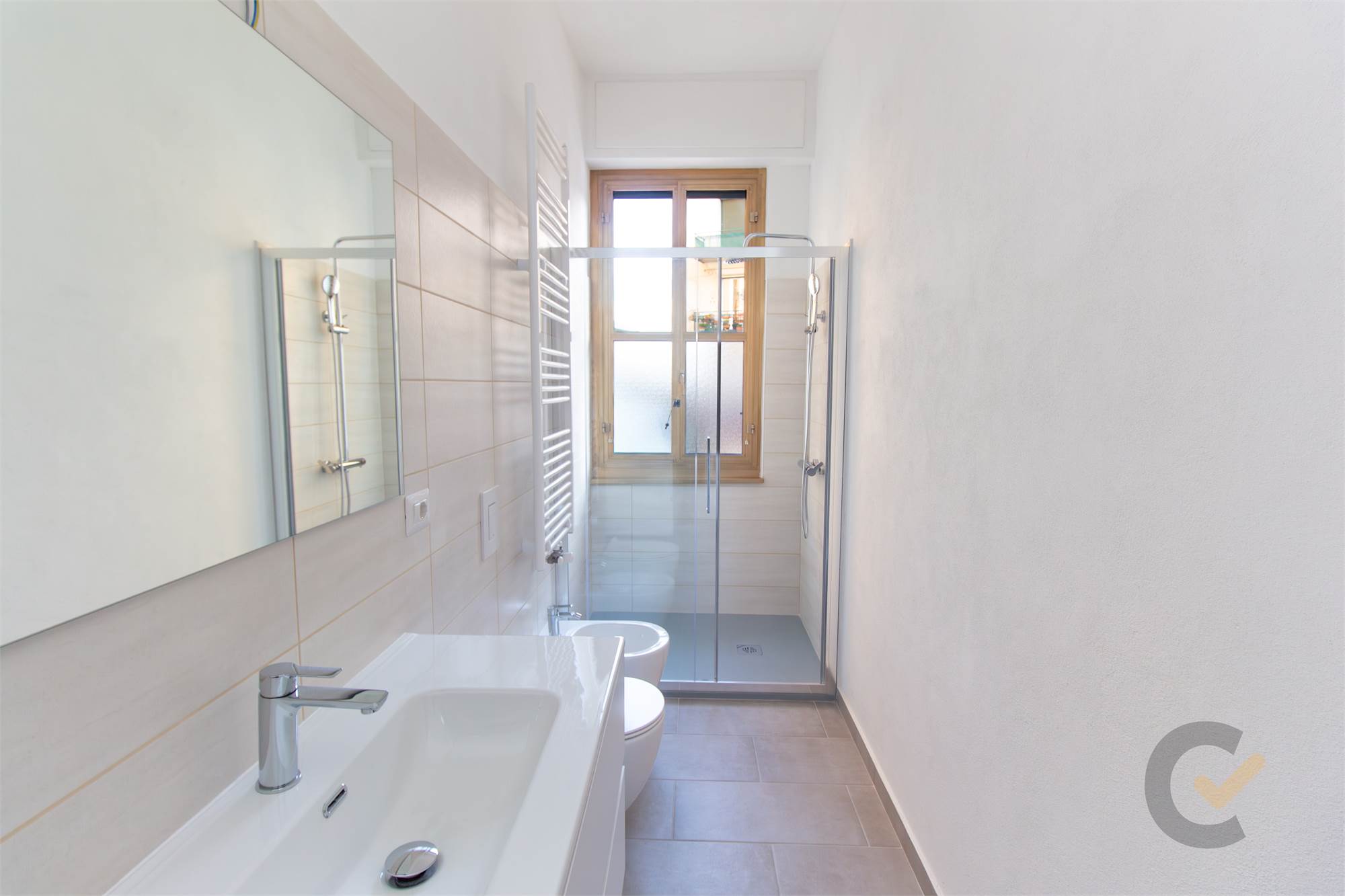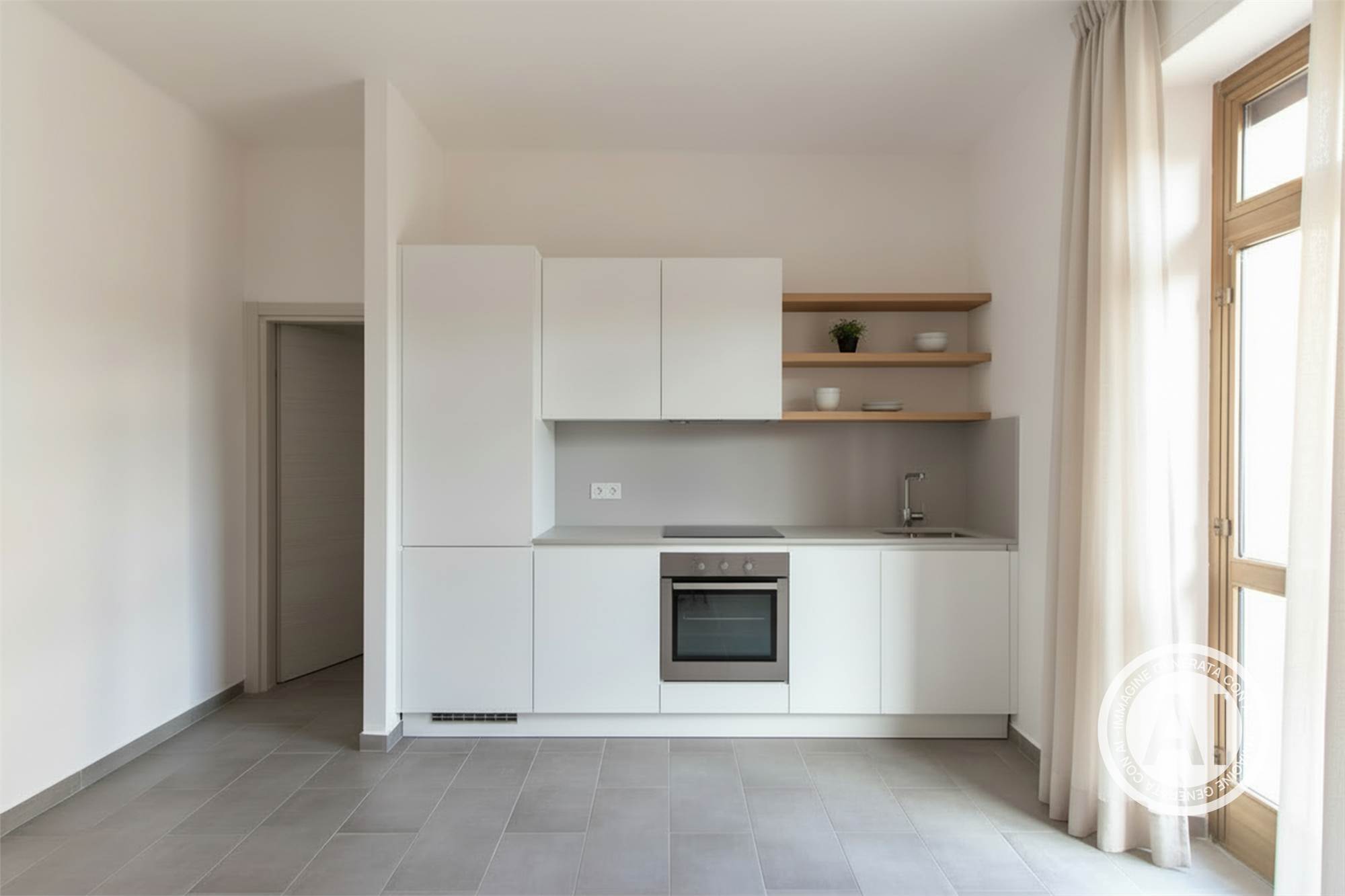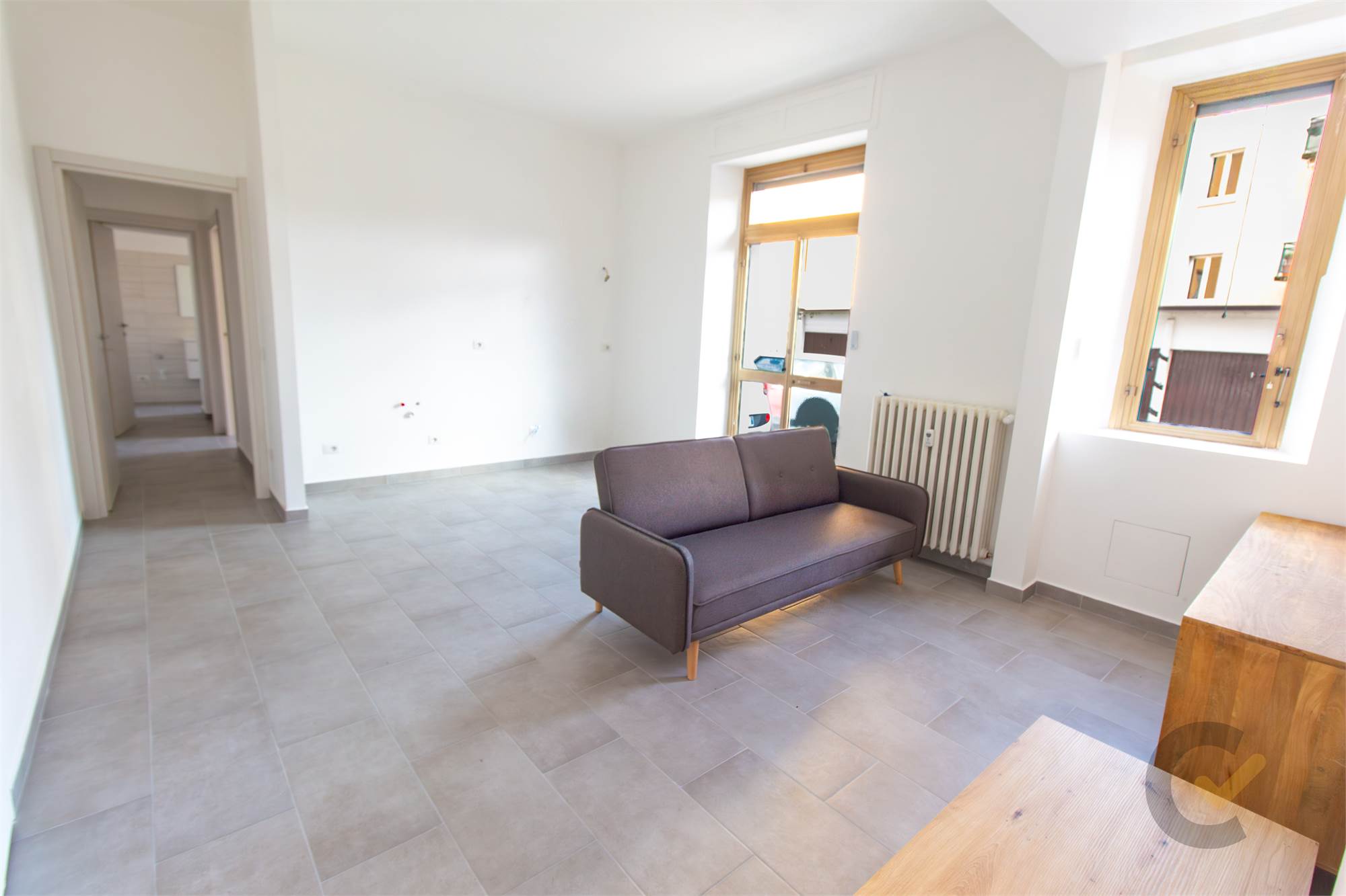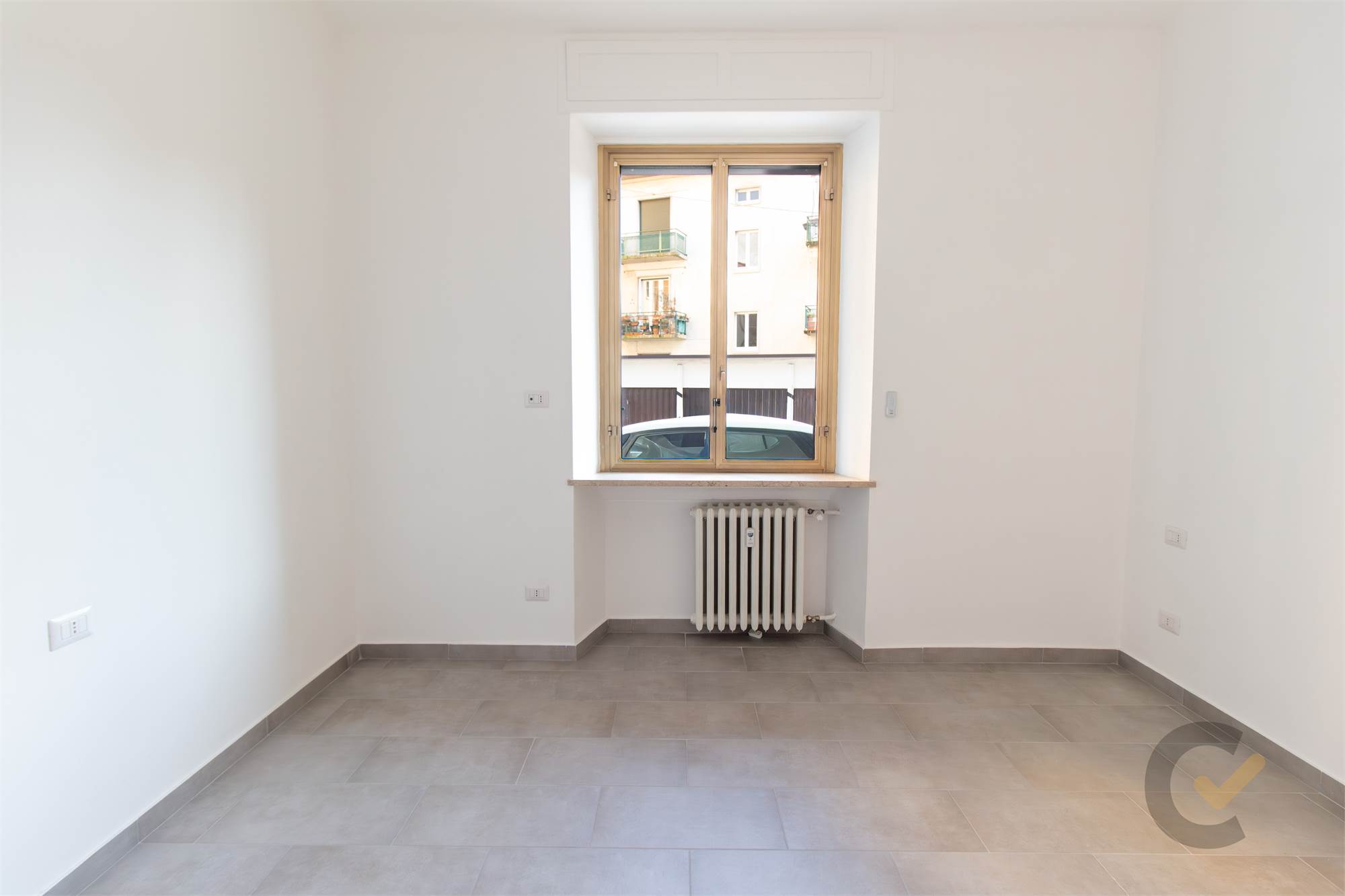 L'interno dell'appartamento è stato integralmente rinnovato per offrire standard abitativi contemporanei, eliminando la necessità di qualsiasi intervento post-acquisto. La zona giorno si presenta come un ambiente funzionale e luminoso, mentre la zona notte è composta da una camera matrimoniale e da un servizio rifinito con materiali attuali. La dotazione tecnica è stata potenziata con l’installazione di tapparelle motorizzate in ogni locale, un dettaglio che ne eleva il comfort e la modernità.