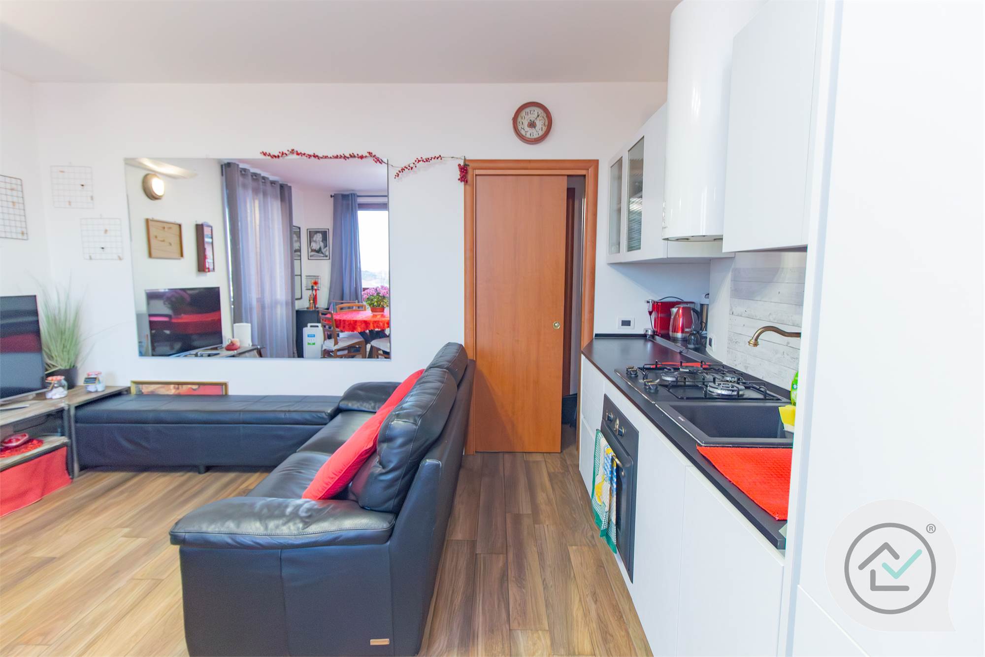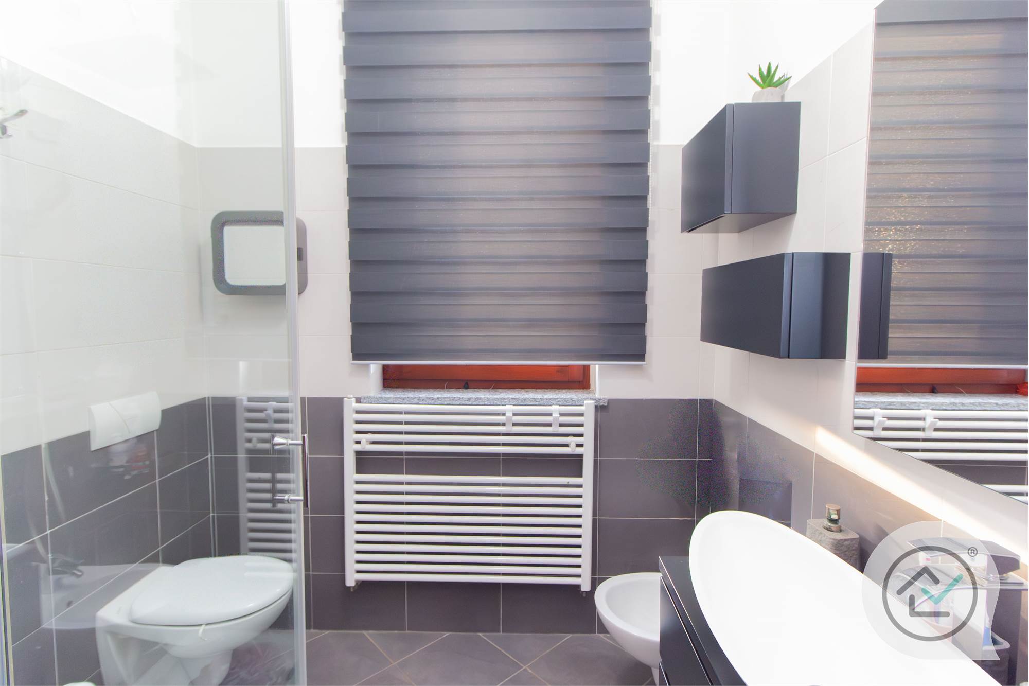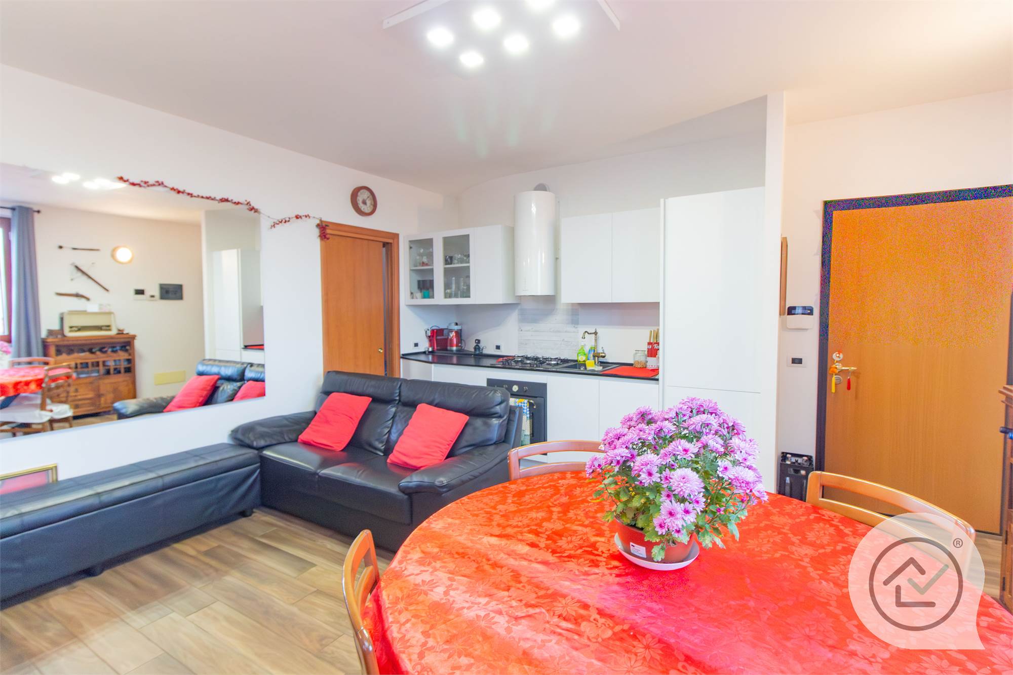 Ben tenuto e rifinito con una moderna pavimentazione in gres porcellanato, l’appartamento è accessoriato con riscaldamento a pavimento, pannelli solari, e vanta una classe energetica "B".