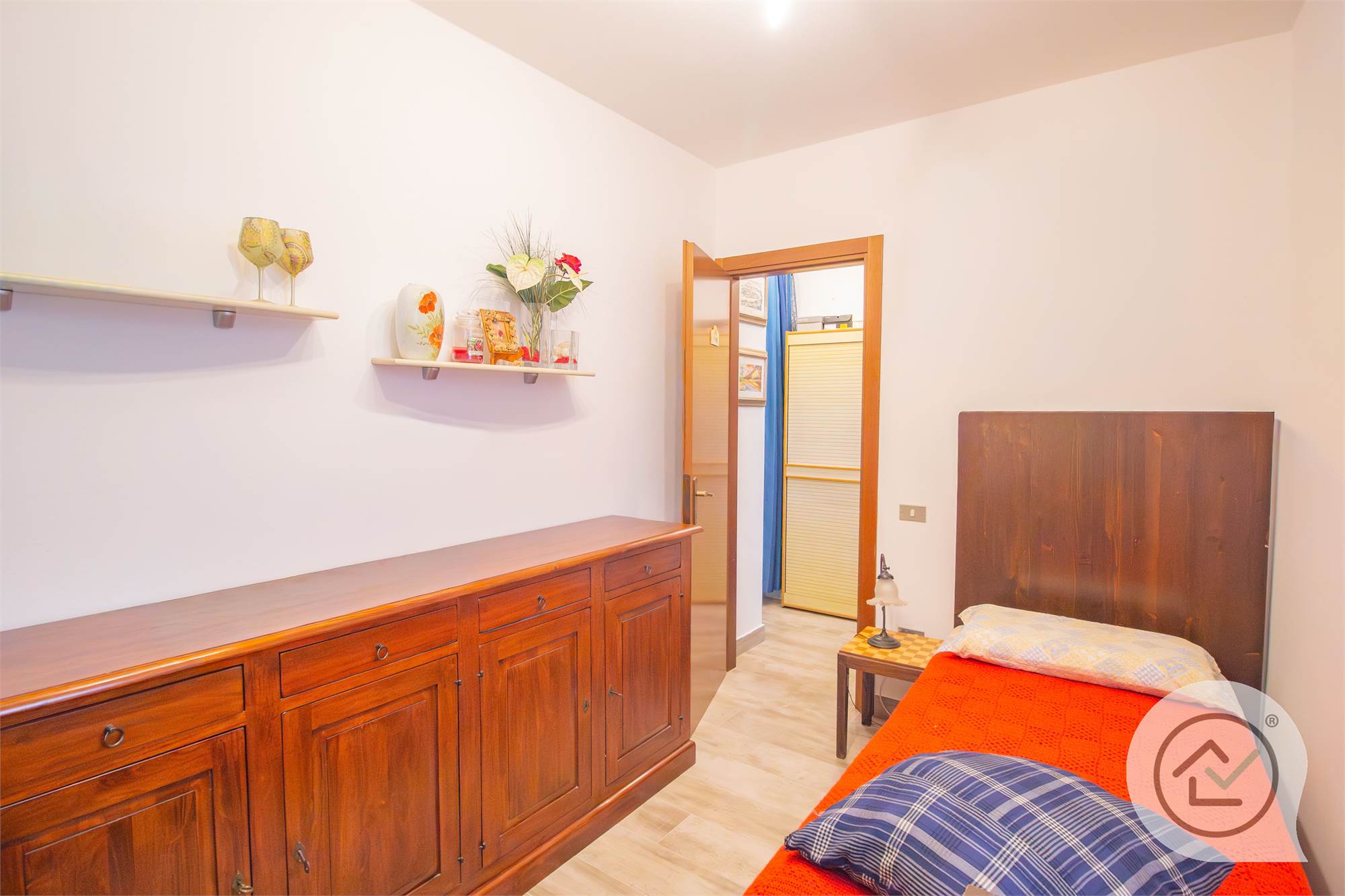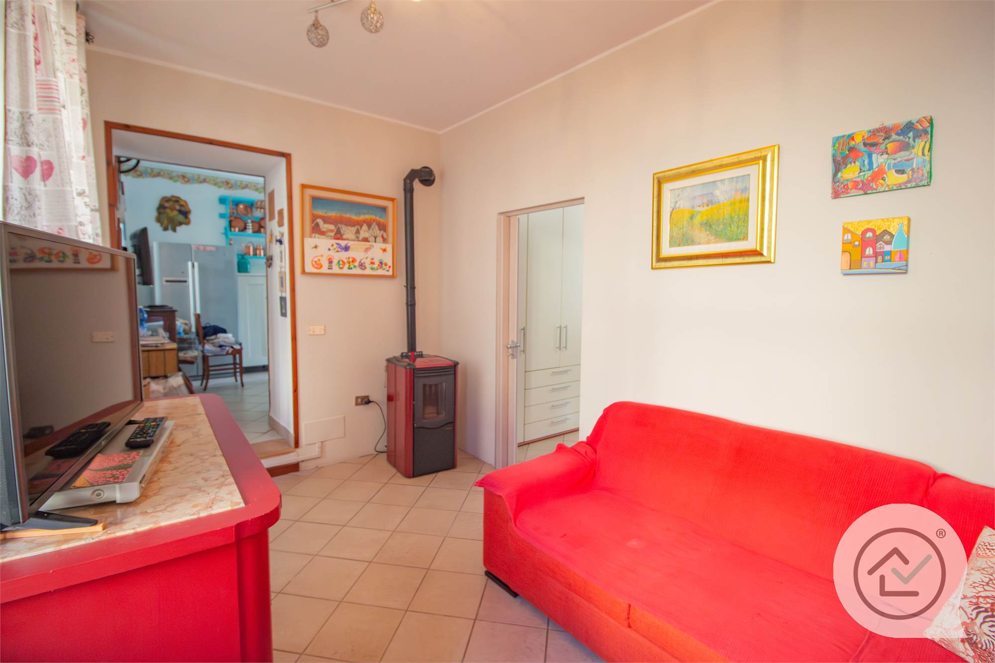 In centro paese, in vendita appartamento al piano terra, composto da zona giorno con cucina a vista, camera matrimoniale e bagno.