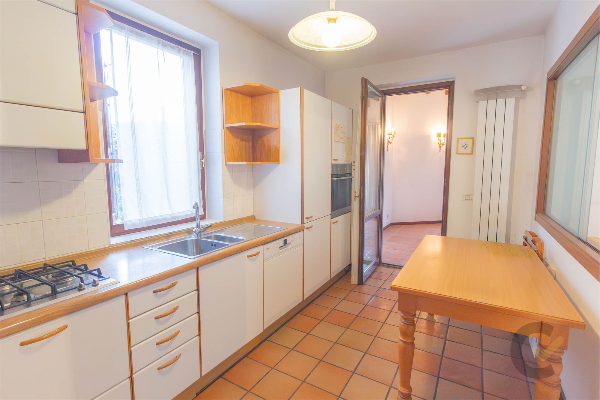 L’ingresso introduce a una zona giorno ben organizzata, con cucina...